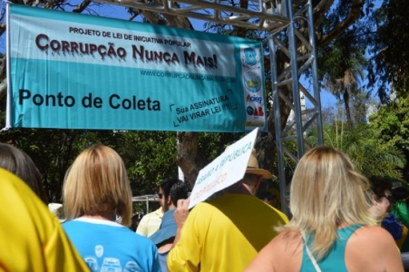 Desde o início da tarde a comissão responsável em coordenar a coleta de assinaturas em apoio ao Projeto “Corrupção Nunca Mais” já ultimava os preparativos na Praça Tamandaré, ponto de partida da manifestação que atraiu representantes da Grande Loja Maçônica do Estado de Goiás, Grande Oriente do Estado de Goiás, várias entidades que apoiam a proposta e a população. Foram montados três pontos para a coleta de assinaturas, onde representantes do Alto Corpo da GLEG, Assessores, Veneráveis Mestres e representantes de Lojas da Grande Goiânia mostraram total comprometimento e dedicação com a proposta.